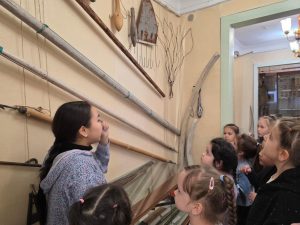 Воспитанники старшего дошкольного возраста, в рамках программы «Родина начинается с НАС», посетили «Музей Берингийского наследия», где смогли увидеть уникальные экспонаты, рассказывающие о традициях и быте коренных жителей Чукотки. Прикоснулись к подлинникам орудий для рыболовства и охоты, услышали занимательные рассказы экскурсовода.